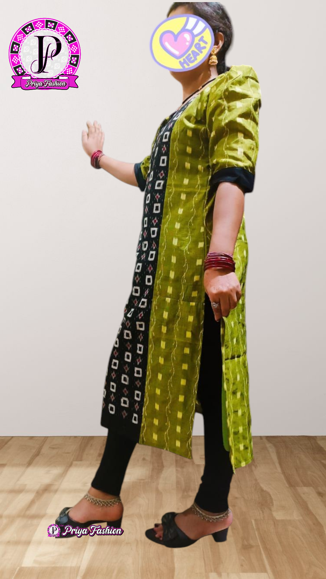An amazing range of women kurti in soft and solid colors that looks perfect for regular wear. With beautiful designs and patterns. These apparels are very stylish and comfortable too. Get rid of the 'regular' look this season wearing Suit Set by Priya Fashion. With a perfect blend of comfort and traditional style, This Sambalpuri Cotton Kurti From Priya Fashion embellished with Buttons.Stiching from Priya Boutique...